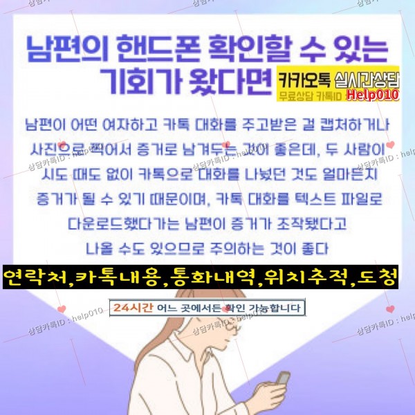 [대한민국NO.1모바일흥신소]⭐카톡ID:Help010⭐배우자외도증거수집 핸드폰복제,위치추적 문자내역조회*카톡내용복구*통화내역확인*복제폰 쌍둥이폰전문흥신소